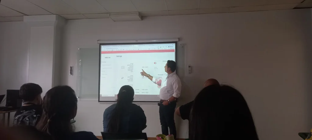 Después de ambas charlas estábamos extremadamente felices con el evento y es que, les cuento un secreto. El día anterior al evento solo pudimos dormir 2 horas … así fuimos un poco desvelados. Tanto así, que pensábamos que para las 10AM ya íbamos a estar inconscientes y dormidos… sin embargo … El evento estaba tan entretenido que tomamos la decisión de esforzarnos y quedarnos más tiempo así que fuimos a almorzar … sí, al burger king dentro de la universidad. Honestamente no sé que tan raro sea eso, ya que es la primera universidad que veo si les soy honesto. Talvez es común? Después de comer vimos la agente nuevamente desde el sitio web oficial. Habían tantas opciones y todas sucediendo a la vez que fue difícil decidir pero al final decidimos ir por una de clientes potenciales.